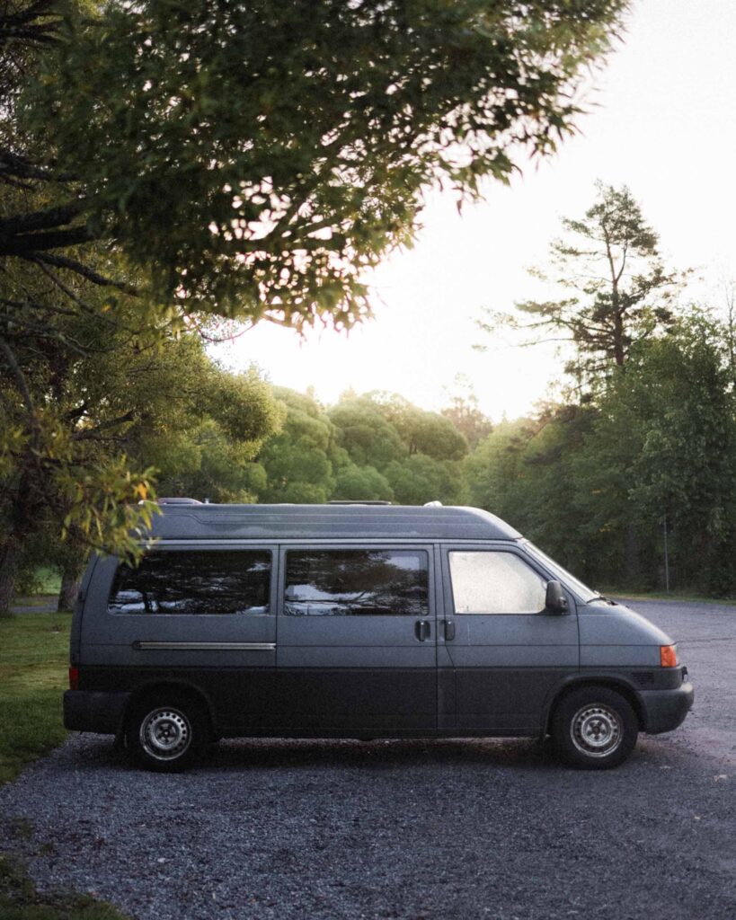 Kiinnitimme huomiota samalla parkkipaikalla olevaan erikoisen näköiseen retkeilyautoon, jossa oli Suomen rekkarit. Se oli Transporter T4, jonka ilmastointiputkesta puski ulos höyryä. Matkaaja näytti olleen reissussa pidemmän aikaan, sen verran rennon ja ammattimaisen näköiseltä toiminta vaikutti. Sama auto oli ollut parkissa kanssamme myös yöpyessämme Tanassa.