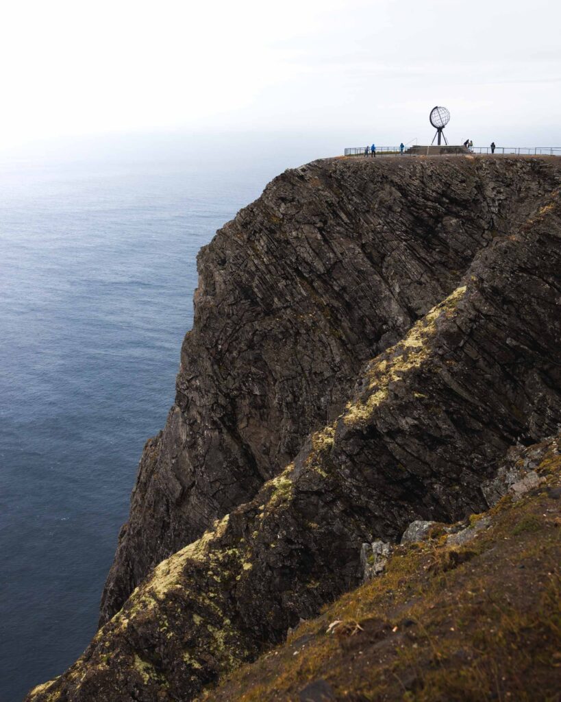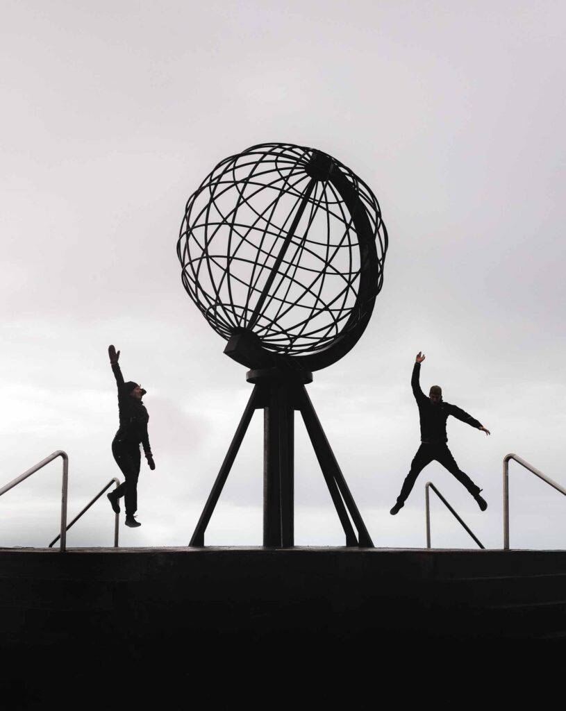 Nyt ei ilmeisesti ollut sesonkiaika, sillä vastaantulijoita oli vähän ja tien päässäkään ei ollut kovin montaa autoa. Kävimme tepastelemassa ja hyppimässä teräksisen pallon vieressä, ja ihmettelimme kauas horisonttiin ulottuvaa vellovaa merta.
