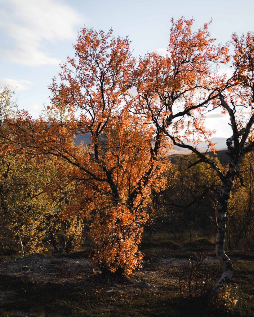 Abiskossa maisema alkoi muuttua huomattavasti punaisemmaksi, ruska oli selvästi juuri alkamassa. Yöllä oli ollut pakkasta, joten vielä kesätunnelmissa elävä keho ei halunnut poistua peiton alla. Päätimme ajella Abiskon kansallispuiston parkkipaikalle, jotta auto lämpiäisi hiukan, ja juoda aamukahvit vasta siellä.